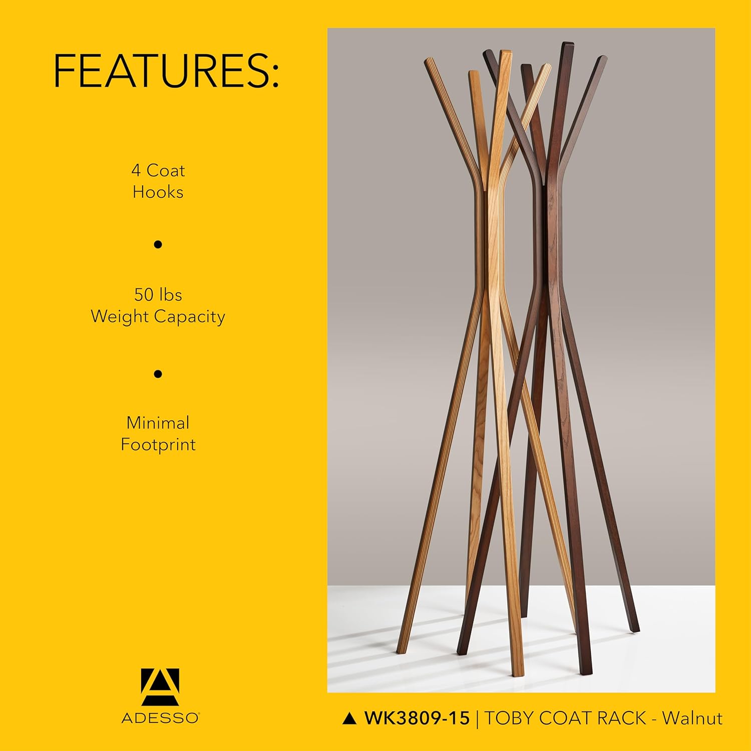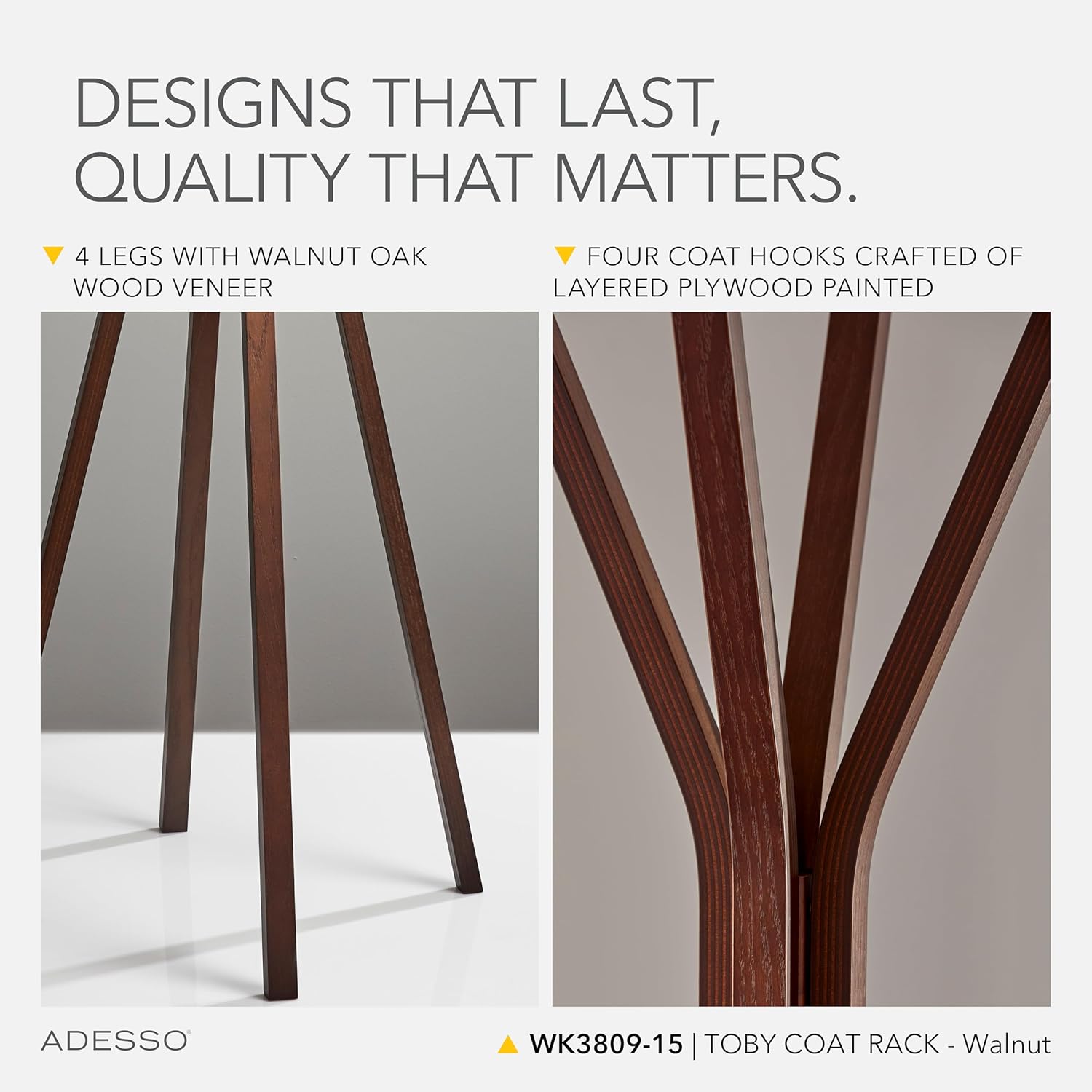A functional and stylish addition to your entry way, the Toby Coat Rack is a mid-century modern statement. Four coat hooks are crafted of layered plywood with a walnut oak wood veneer on the outer layers. A 16. 5" square footprint gives this coat rack a sturdy stance.