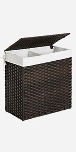 Serve You for Many Years: Wear-resistant PP plastic rattan is elaborately weaved around a durable iron frame forming an sturdy rectangular shape. Also, the tight hand-weaving process and iron-wire-reinforced lid strengthen the overall rigidity.